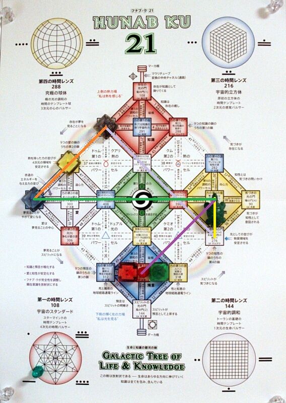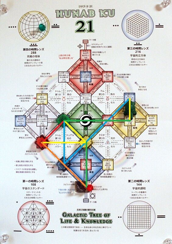 運命=赤い地球、類似=白い風、反対=青い手、神秘=黄色い種、ガイド=赤い蛇