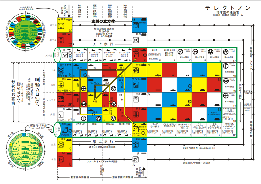 「テレクトノン」の10日のマス(今日の黄色いパカル・ヴォタンの亀がいる場所)には 「マヤ マホメット パカル・ヴォタンのテレクトノン 1,440,000キン バクトゥン10」とある。