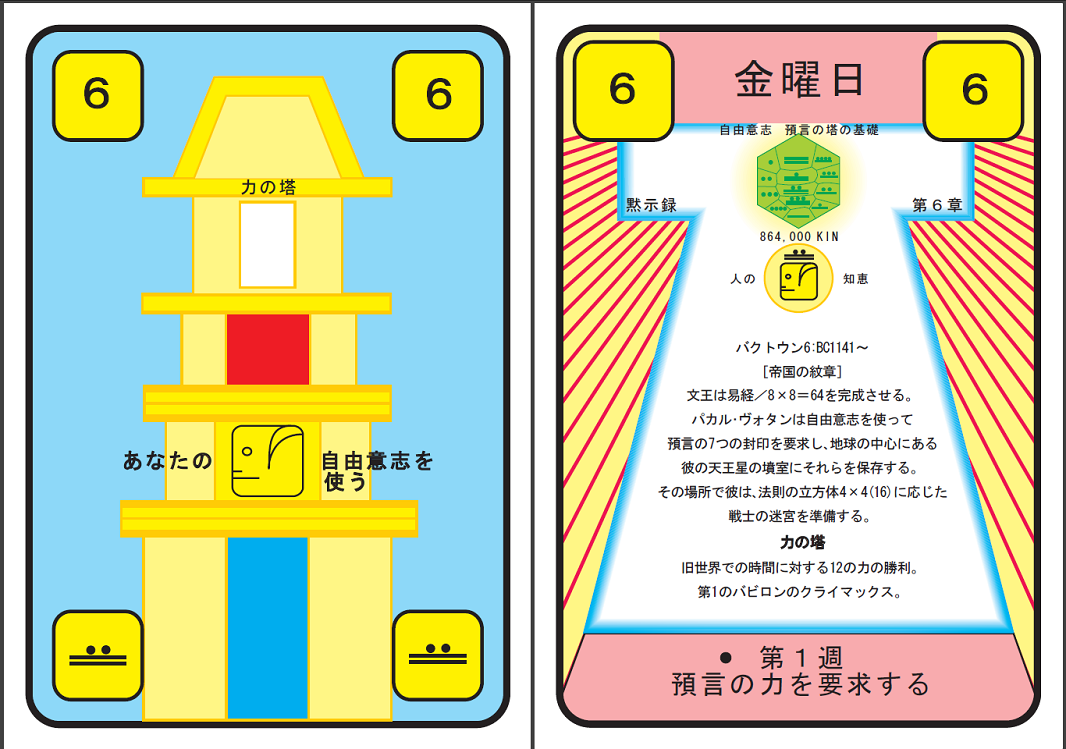 「テレクトノン」の毎月6日には、パカル・ヴォタンの黄色い亀が 太陽の預言的な流れの地球軌道の黄色い人の紋章の6日のマスにいる。