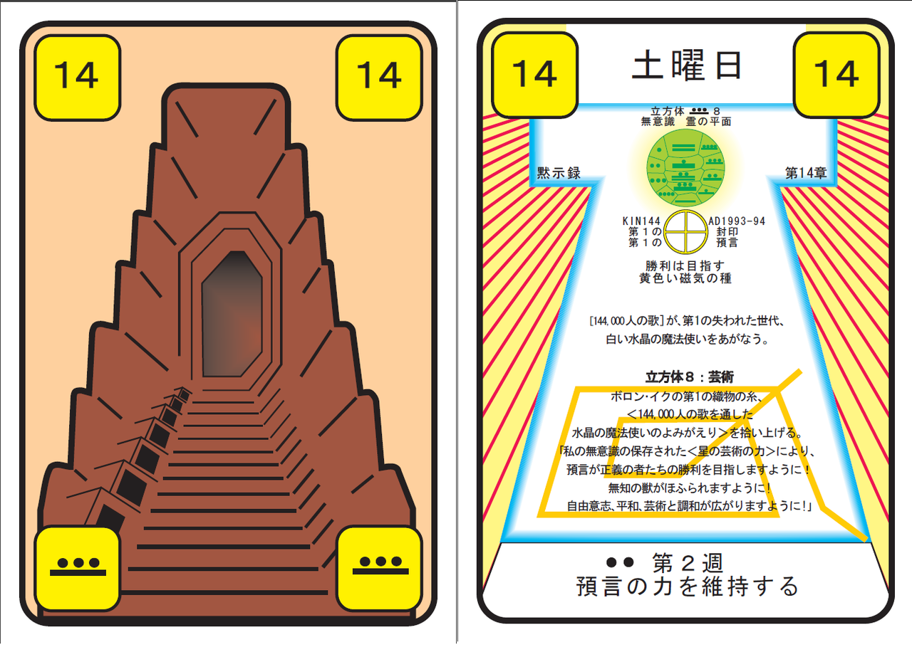 「テレクノトン」の毎月14日は、 預言の7年を始める 預言の第1年の 黄色い磁気の種の(1993-1994)年に対応する。