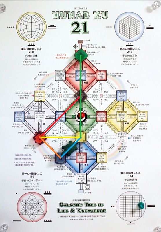 運命=赤い竜、類似=白い鏡、反対=青い猿、神秘=黄色い太陽、ガイド=赤い月