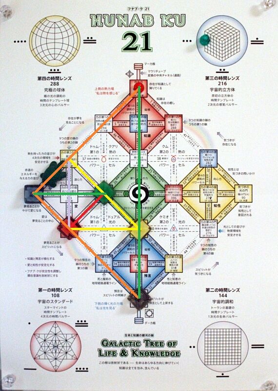 「フナブ・ク21」のヘプタッド・パス6は、青い夜/ドリーマーと黄色い星/アーティストをつなぎ「夢を見ることが芸術を発展させる」。
